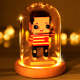 (No Brick Figures) Acrylic Anti-dust Cover Wooden Base with Light 8*12.5cm