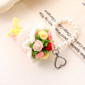 Pearl Chain Handwoven Floral Keychain - Bohemian Rose Wristlet, Elegant Purse Accessory for Women
