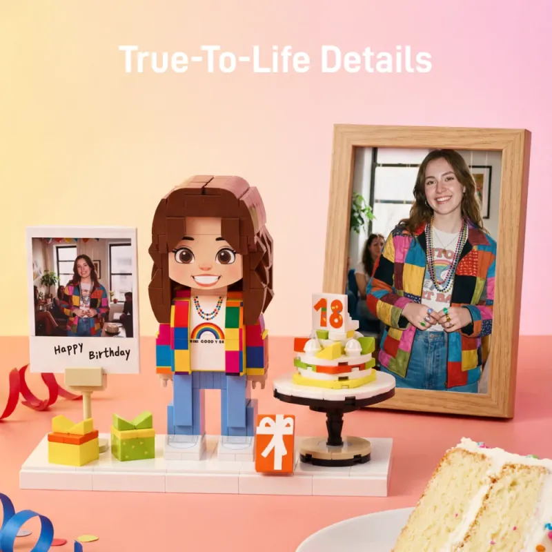The selection of photos is the beginning of the design of the Brick Figures, upload the front, full body, clear, no cover, wearing bright colors, patterned figure photos will be a better choice. The scope of customization includes the character's hairstyle, expression, conventional accessories and so on. For complex accessories may not be well restored, we will try to restore within the structure of the building blocks for you. The size is the stature of the person standing from head to toe, isn't the actual height of the person while sitting or lying. Material: ABS Eco-friendly
